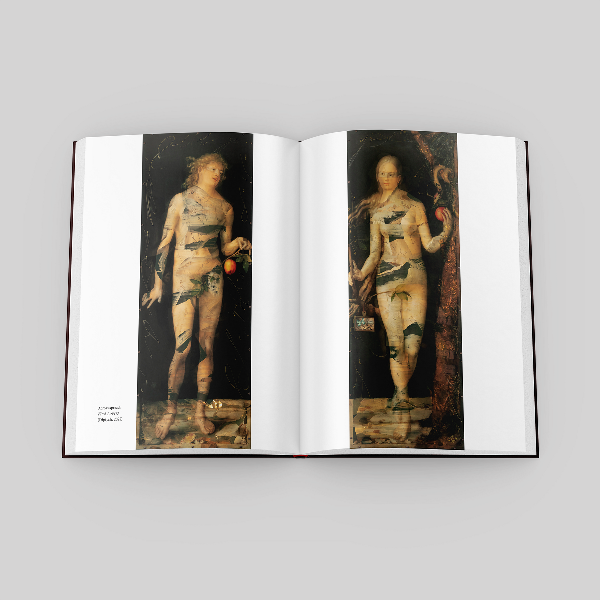 Magidson's work is about beauty, indeed she is in love with beauty.  As such, the artist's work requires you to slow down and look. At first glance, one encounters the quiet authority of Renaissance portraiture-figures composed in stillness, faces illuminated by a familiar, classical light. Yet as the eye adjusts, the image begins to shift. Surfaces open. Ancient writings drift across skin. Butterflies hover in suspended motion. Layers of pigment, collage, and embedded objects create a space that is neither entirely painting nor entirely sculpture, but something suspended between image and presence. What appears whole at a distance reveals itself, upon approach, as an intricate construction.